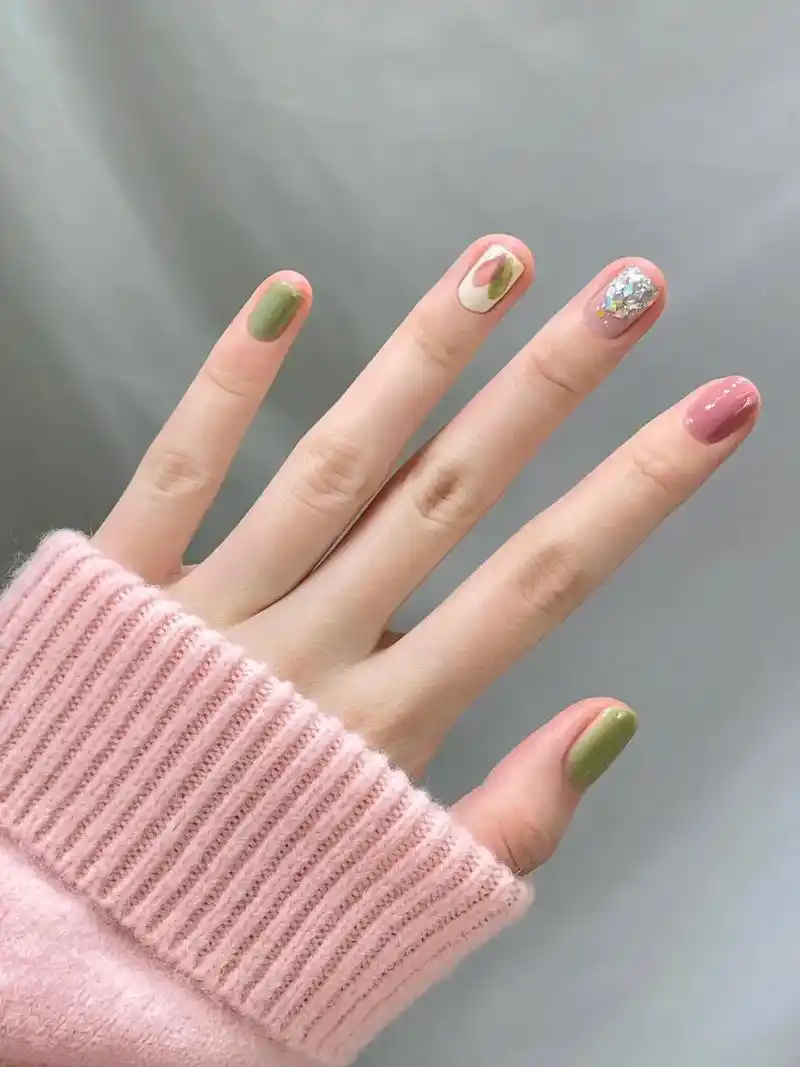 秋冬跳色美甲姜黄棕咖撞色小众法式