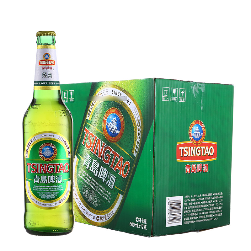 青岛啤酒tsingtao青岛啤酒纯生8度瓶啤瓶装600ml12