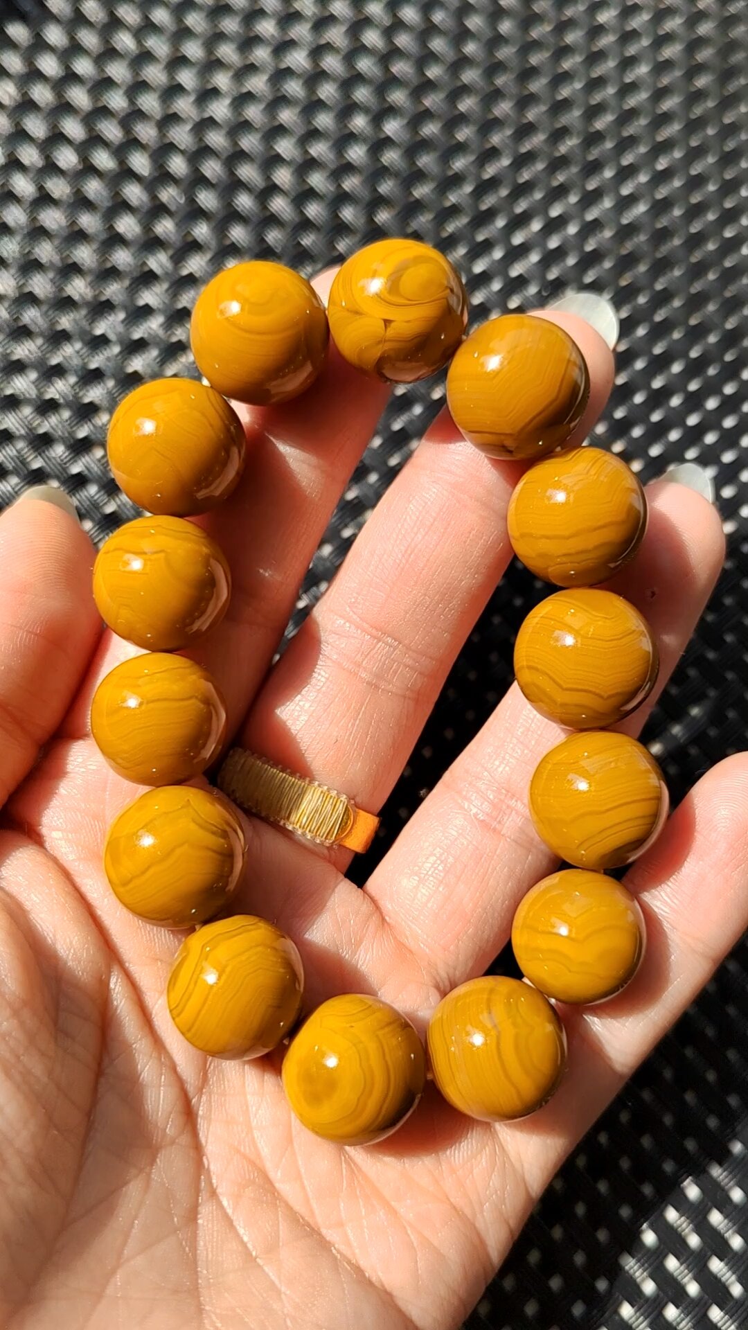 亚光鸡油黄皮包浆料玛瑙手串一条,_价格46元_第1张