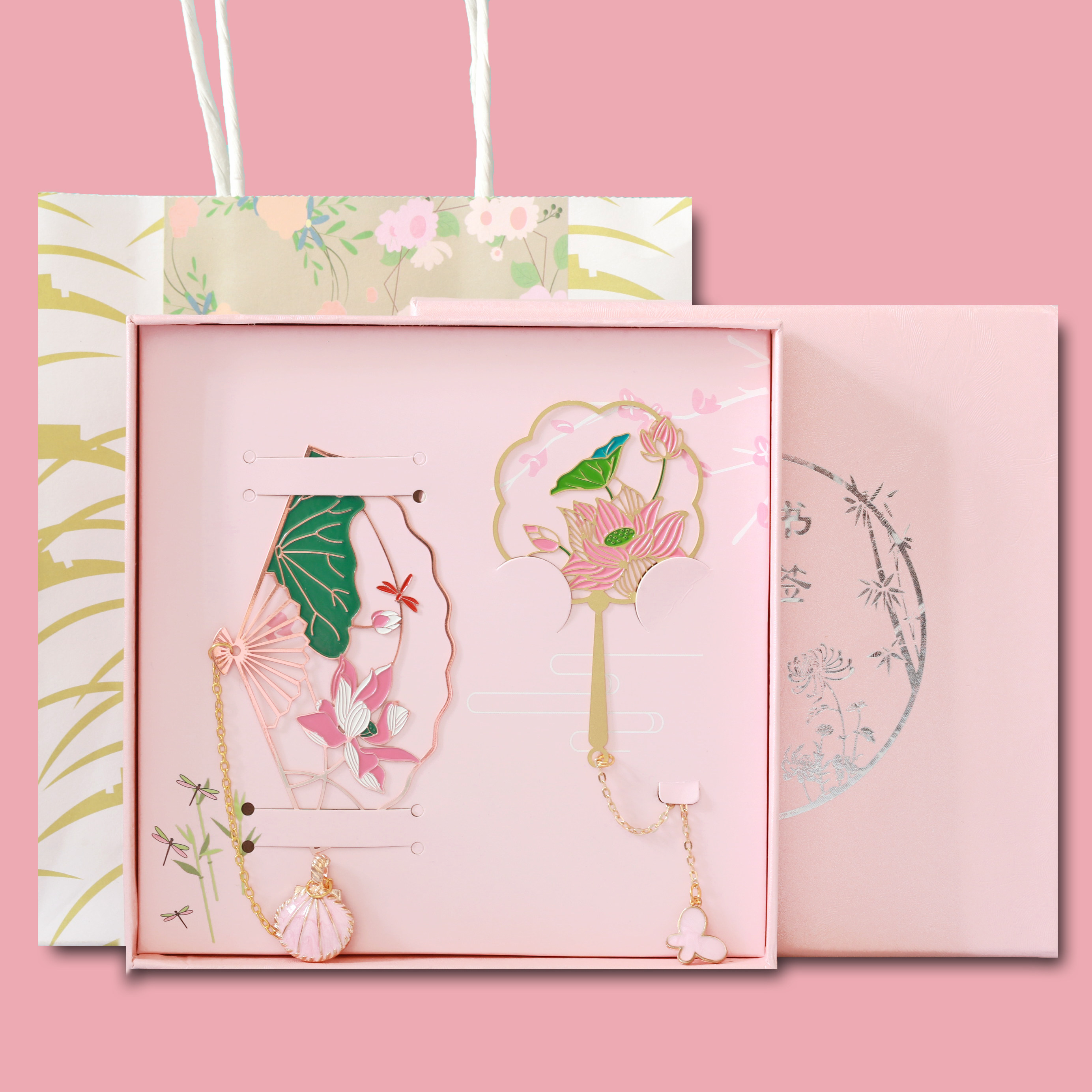 荷花团扇流苏古典中国国风黄铜书签创意小清新书签