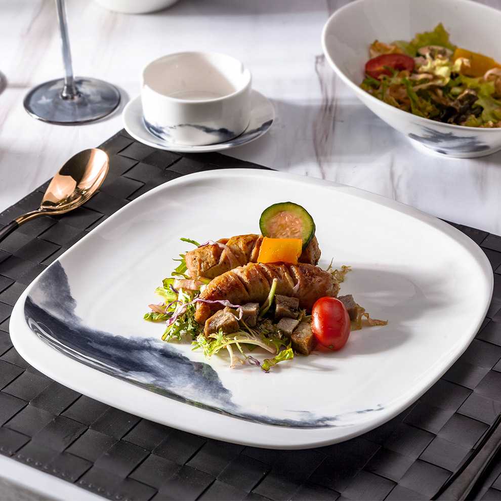 新中式餐盘轻奢中式餐盘摆件样板房摆台水墨圆垫板陶瓷平板