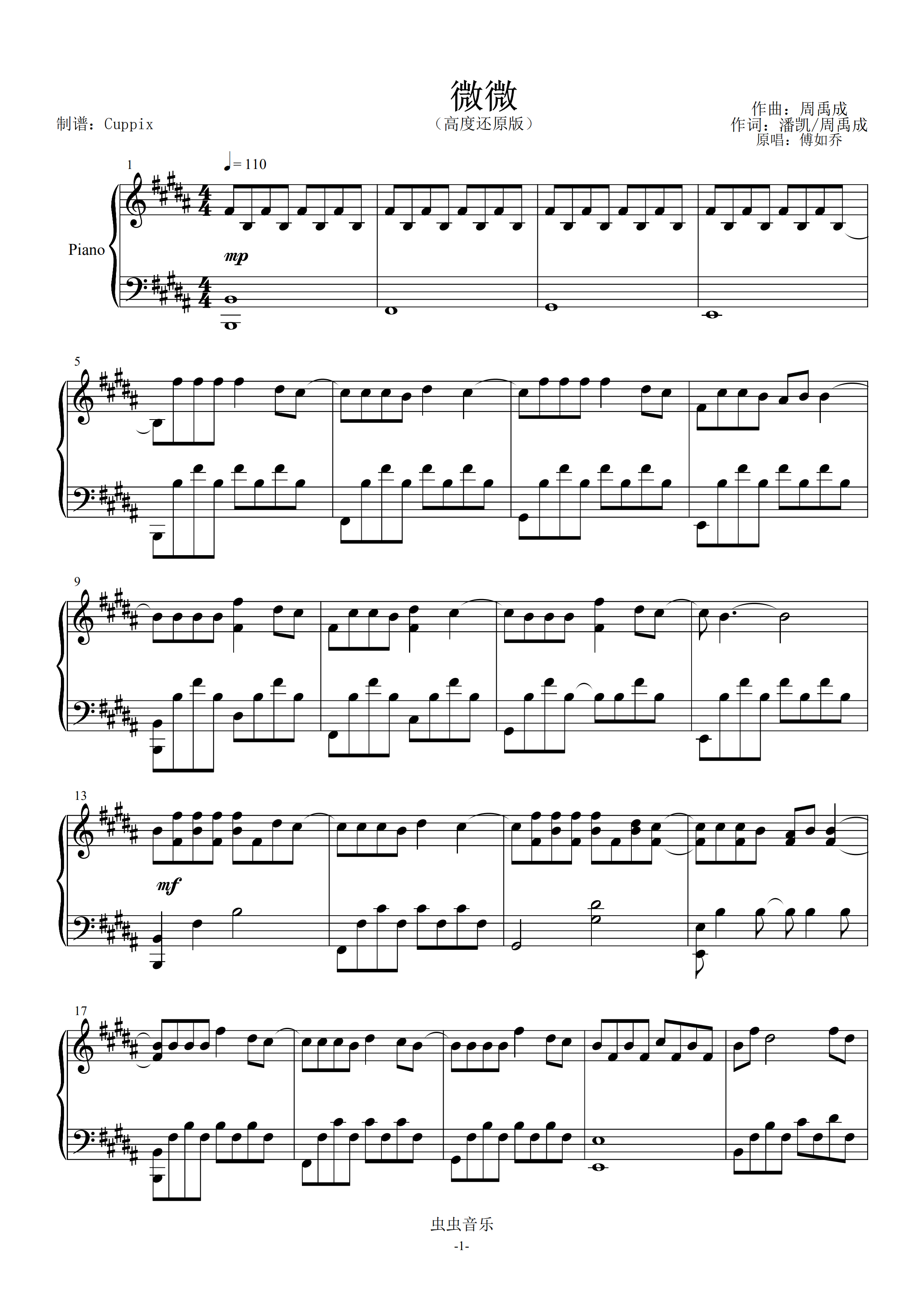 傅如乔《微微》高度还原 钢琴独奏钢琴谱-cuppix-虫虫钢琴