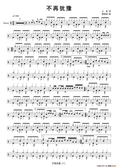 不再犹豫架子鼓谱丝竹常清制谱版丝竹常清个人制谱园地