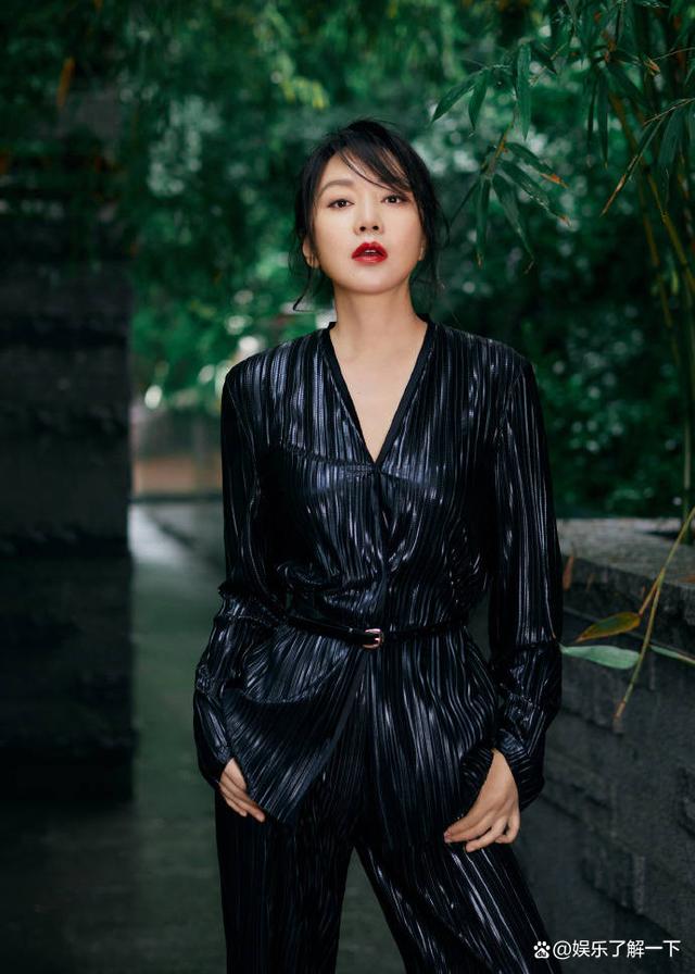 "佟掌柜"闫妮真美,49岁的年纪卷发配一袭黑色长裙优雅动人,风情万种的