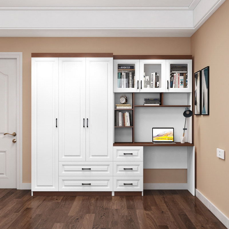 衣柜书桌一体轻奢书架电脑学习桌小户型男童连体书桌柜