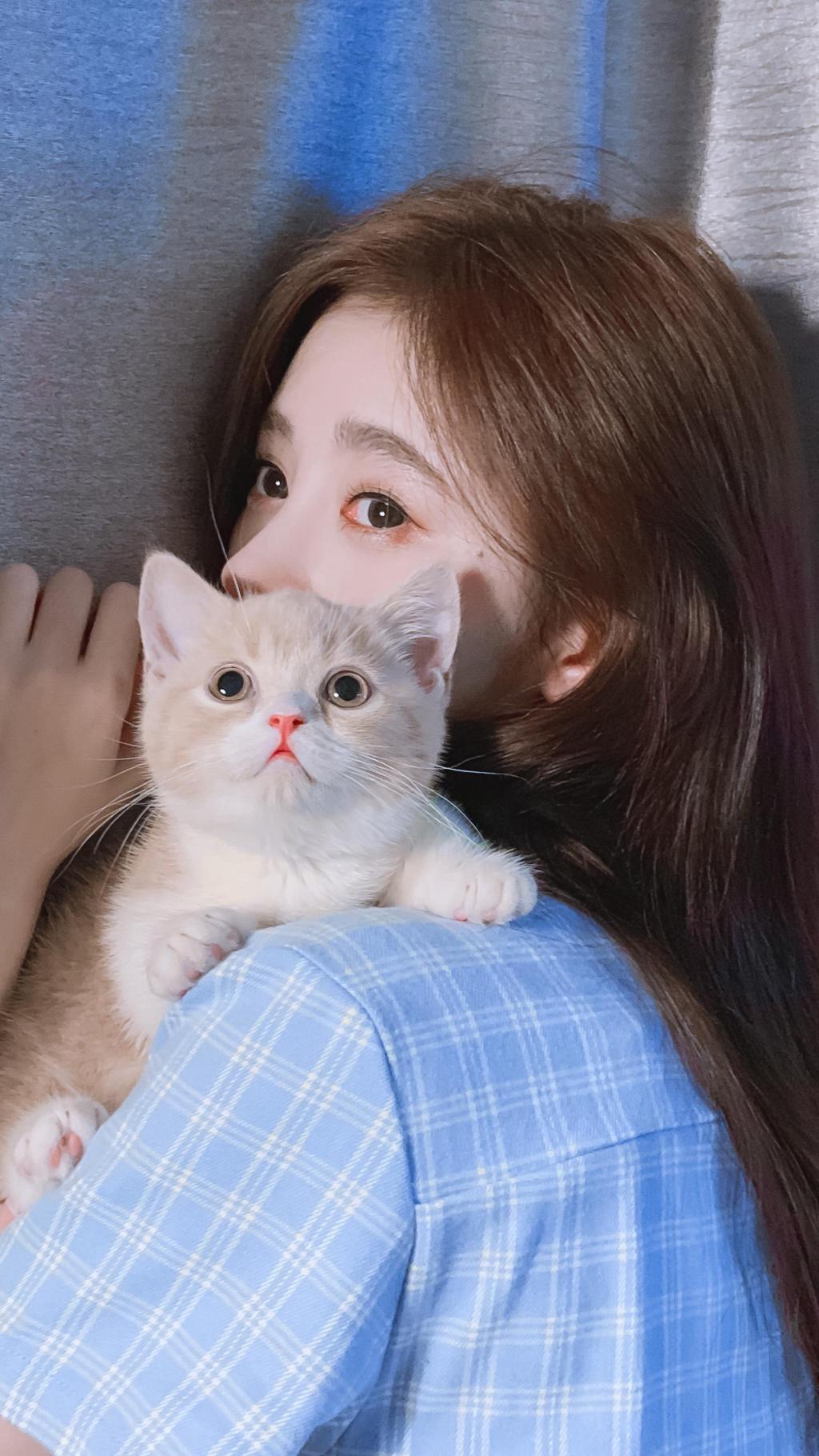鞠婧祎甜美可爱撸猫照