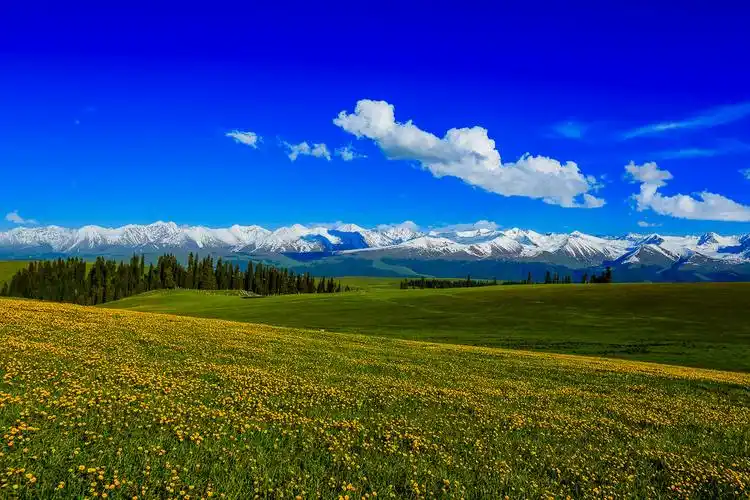 新疆就是这么歹 皑皑雪山,郁郁葱葱的云杉,广袤的草原,悠然的牛羊,都