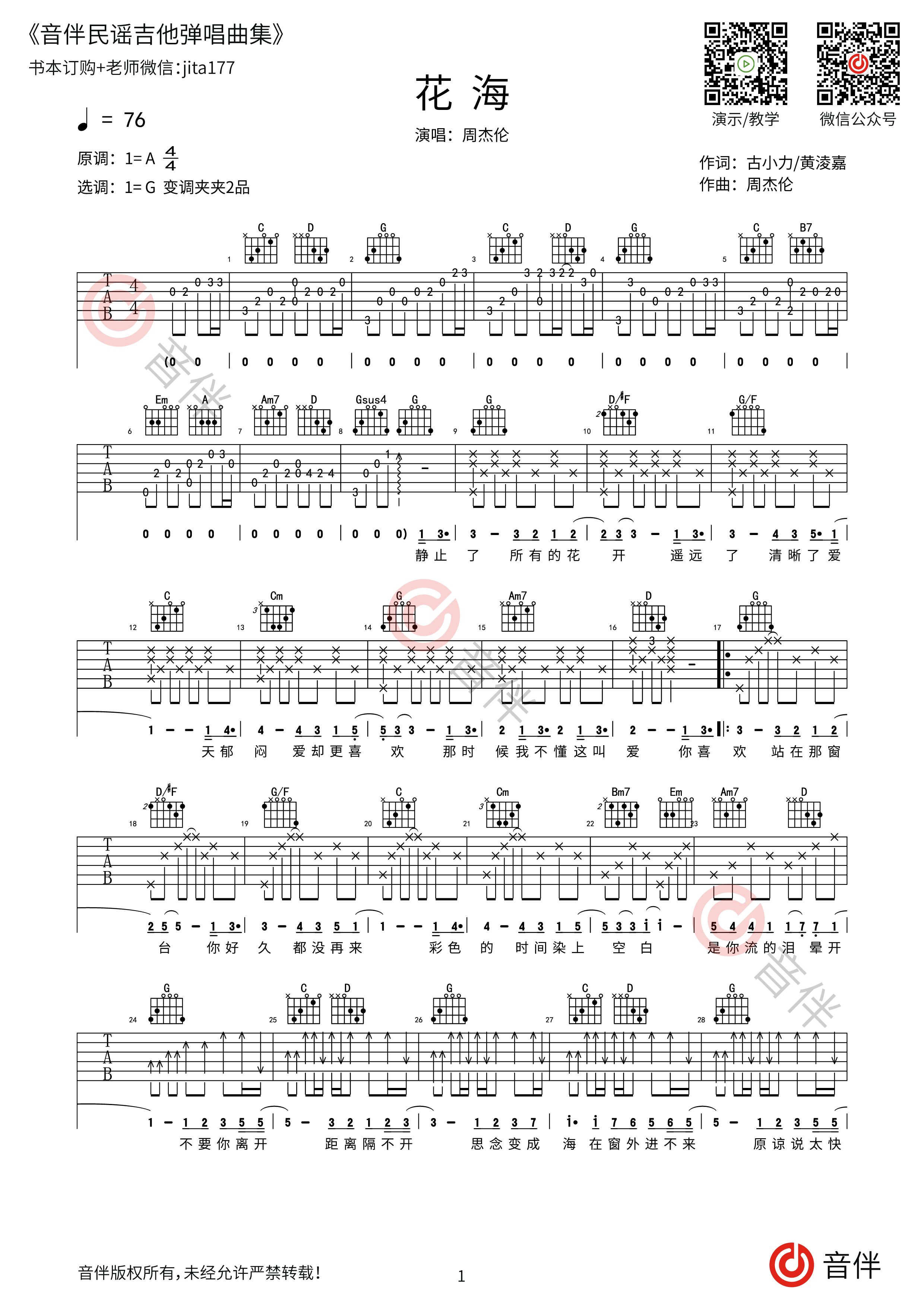 《花海吉他谱》_周杰伦_g调_吉他图片谱2张 图1