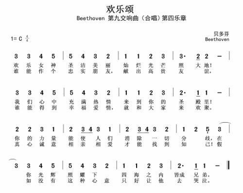 欢乐颂(贝多芬)简谱乐谱