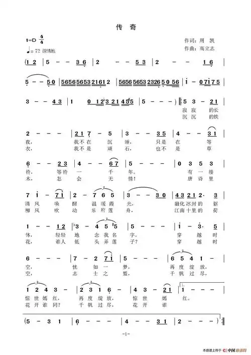 传奇简谱(图1)