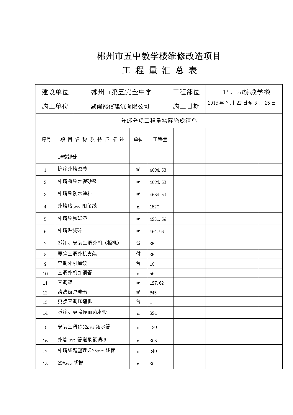 五中改造工程量清单汇总表.doc