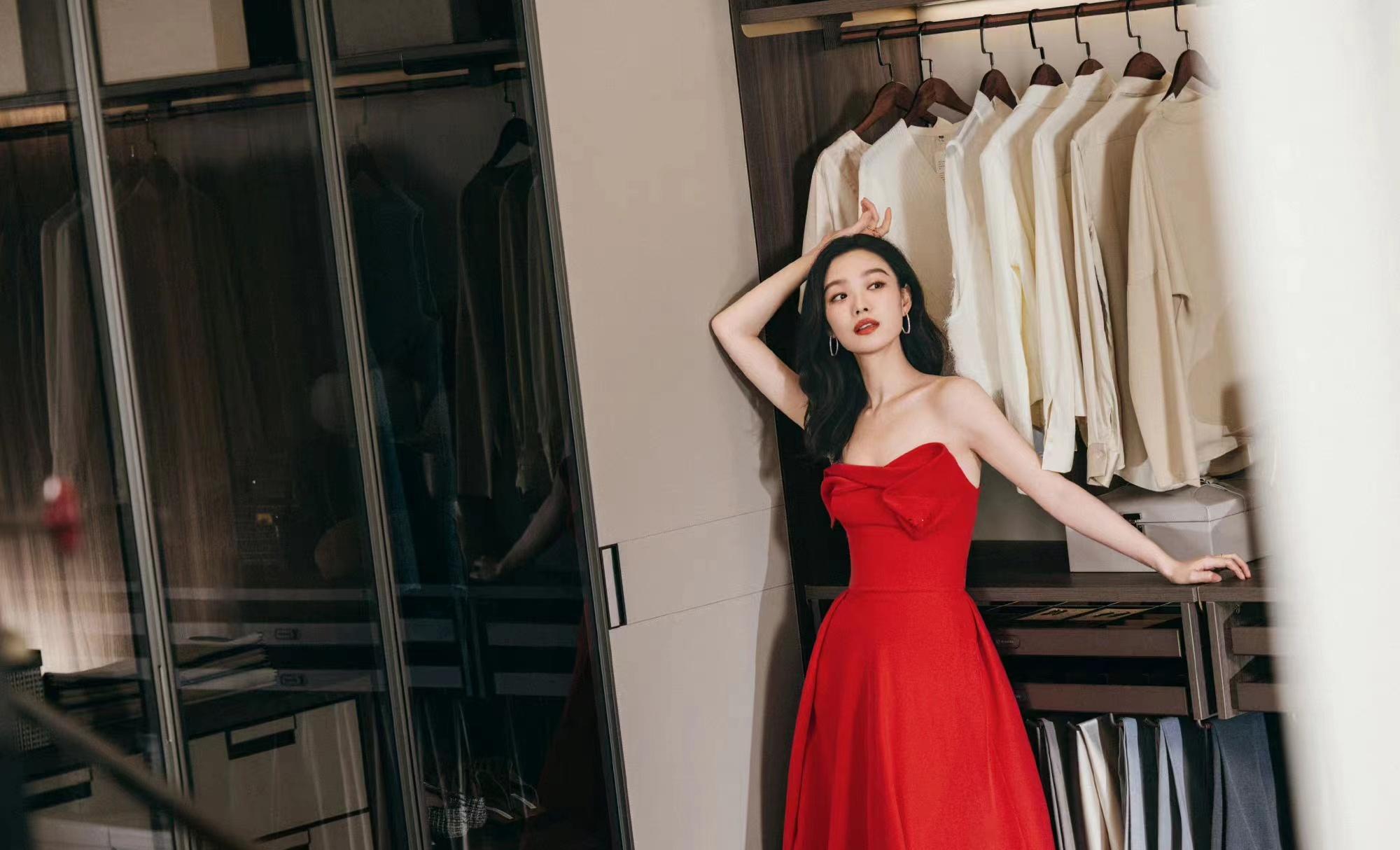 倪妮红裙穿搭,热情复古,大气又优雅