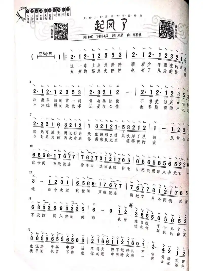 起风了d调古筝谱分享有指法 起风了d调古筝谱分享有指法