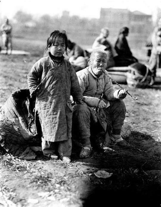 老照片中民国时期的百姓,流离失所的老人