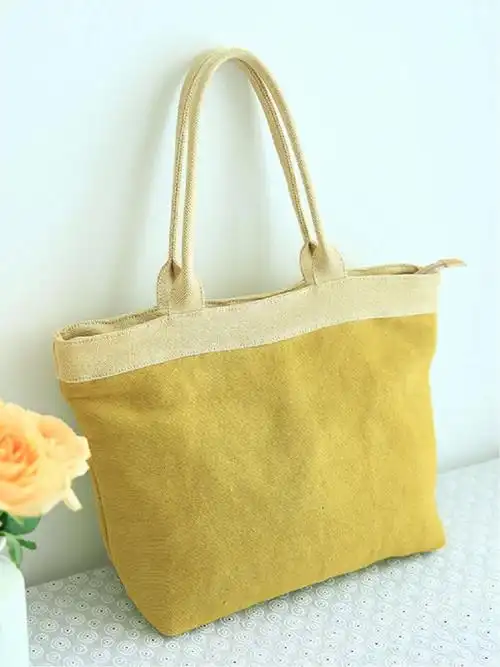 2021韩国东大门撞色抽绳麻料帆布包手提手提包包包女通用款女包