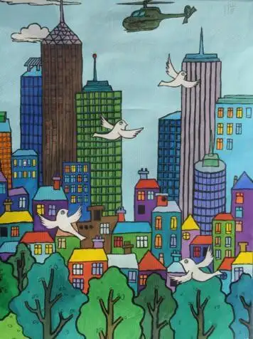 一,出示高楼大厦图片,引导幼儿欣赏,激发幼儿创作的兴趣.