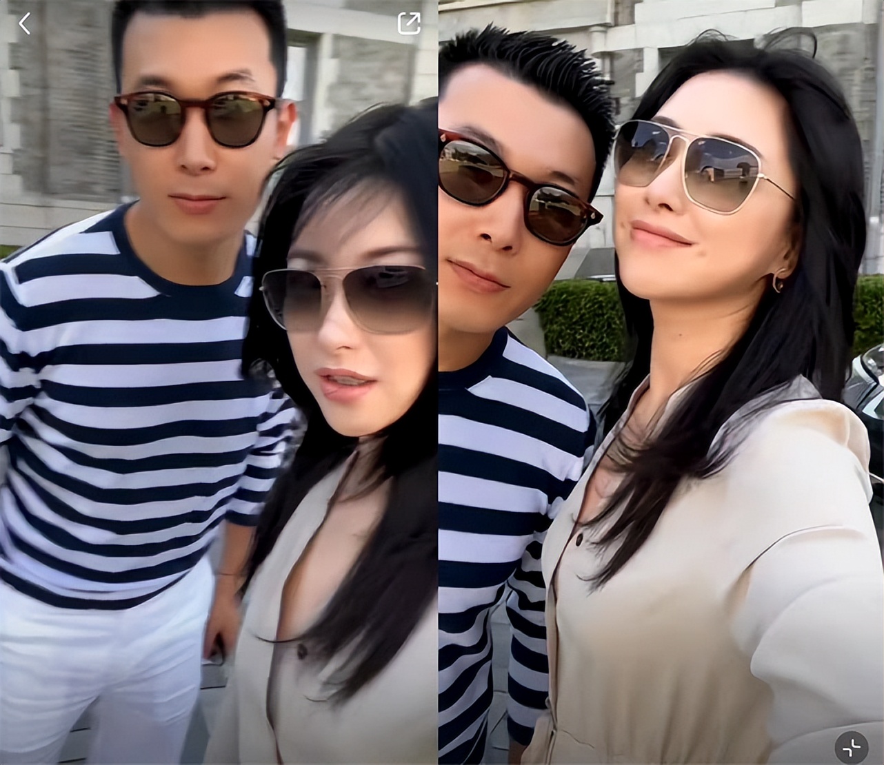 名媛朱珠和老公合体秀恩爱,黑色紧身裙大肚凸起,手抚孕肚显母爱