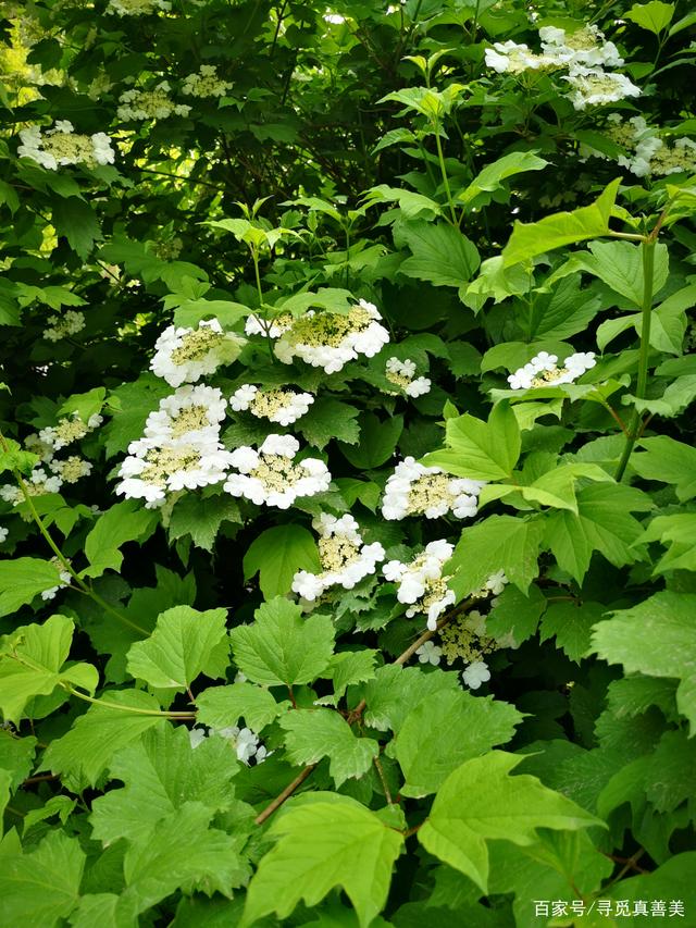 天目琼花清秀美丽花开似雪果赤如丹白色伞状花序春可观花秋可观果花语