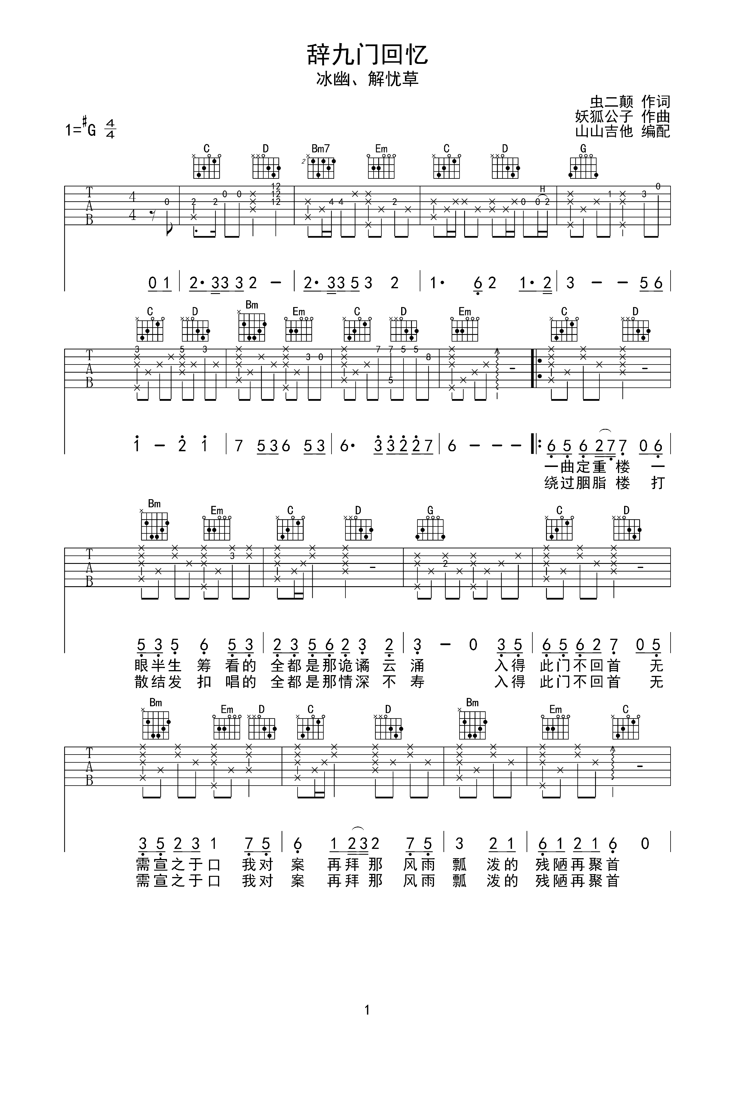 辞九门回忆g调六线pdf谱吉他谱-虫虫吉他谱免费下载