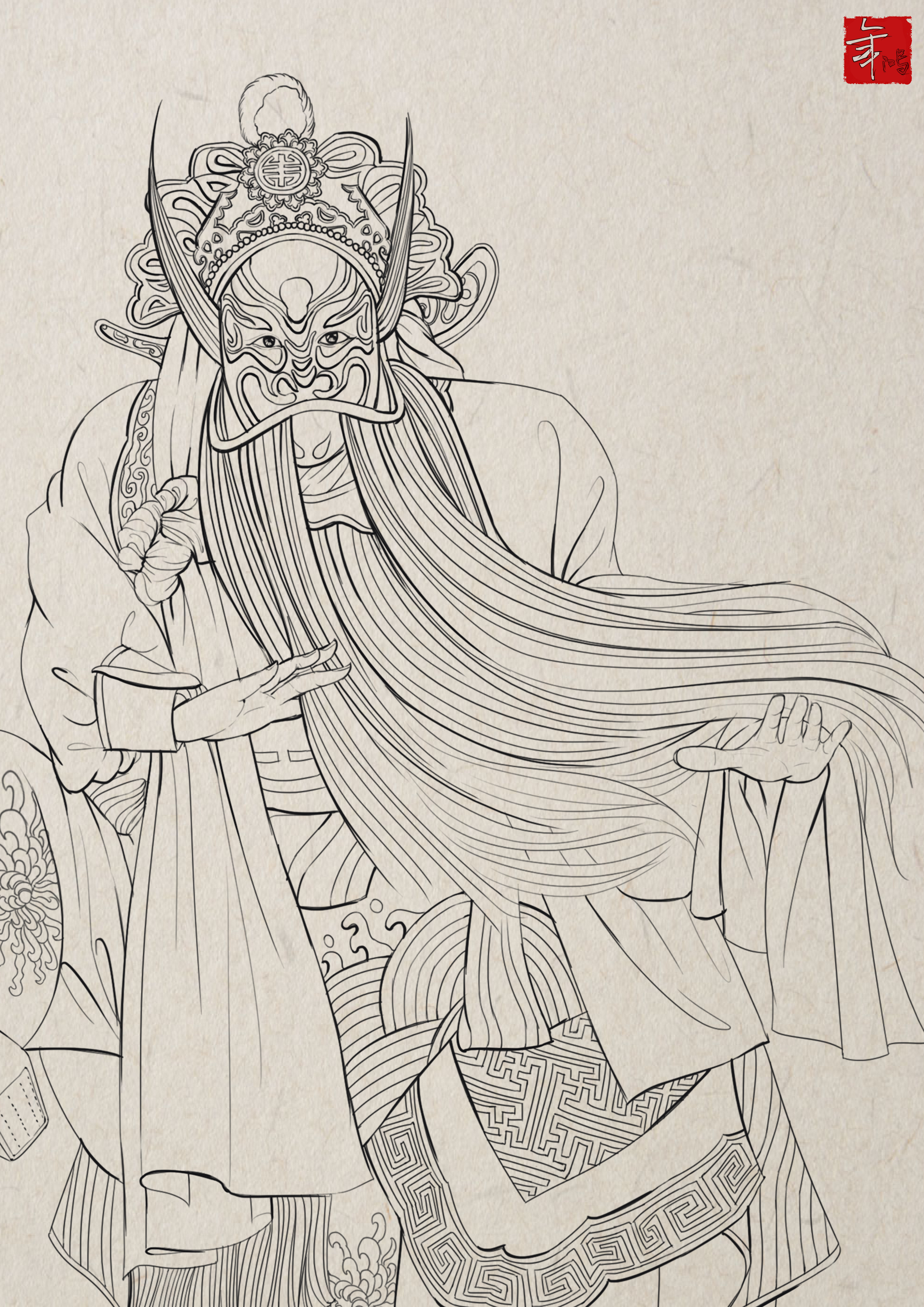 雷锋小学 徐小巾 线描《钟馗驱魔》