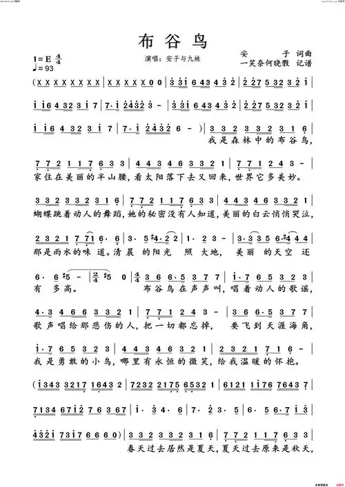 布谷鸟简谱-安子演唱-安子/安子词曲 - 51乐谱网