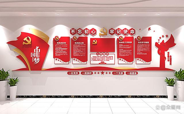 一个好的入党宣誓词文化墙背景墙设计时,需要将党徽,党旗,入党誓词等