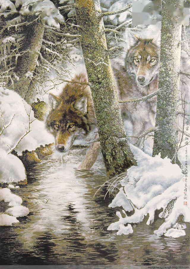 艺术家左进伟工笔国画狼赏析:所向披靡 尽展雄风