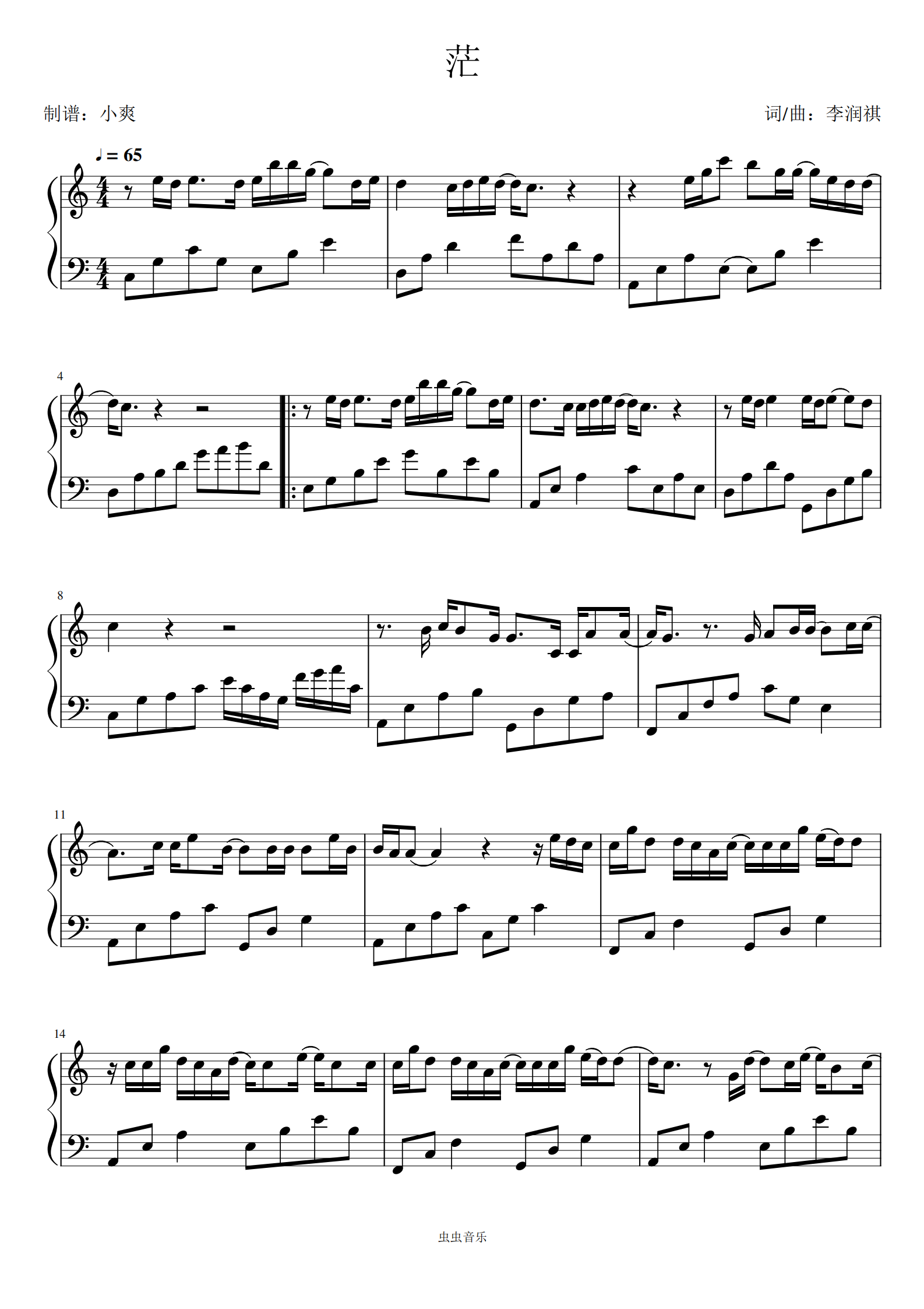 茫钢琴谱 李润祺《茫》五线谱