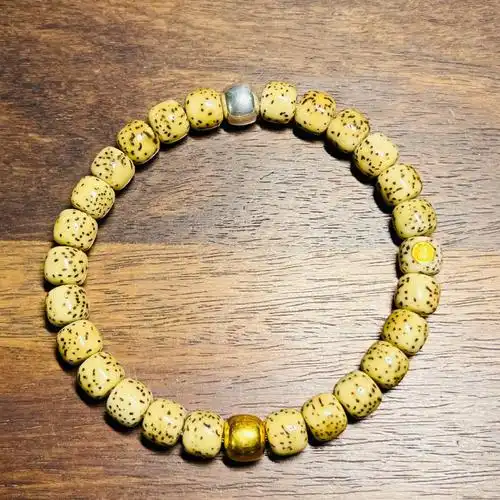 海南星月菩提桶珠小单圈规格6×8mm桶珠搭配黄杨木梅花,菩提根莲花
