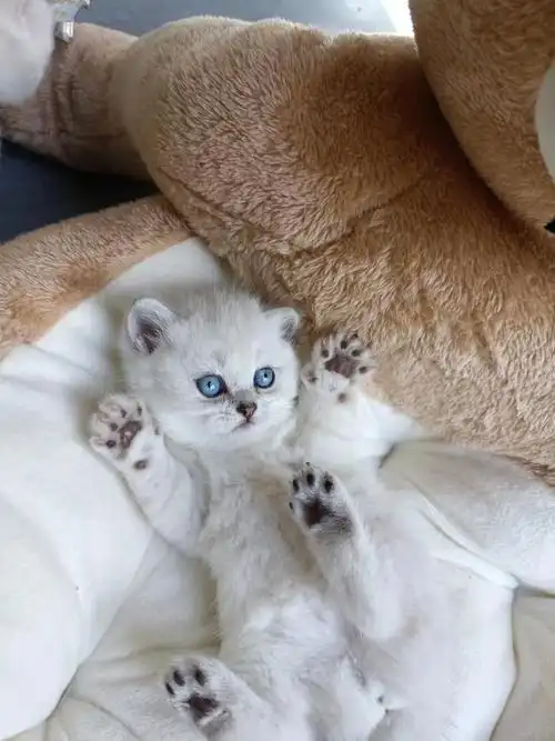 呈现天蓝或湖蓝,越清澈越好,爪子肉垫成深色,或棕色[星r]银点属于英短