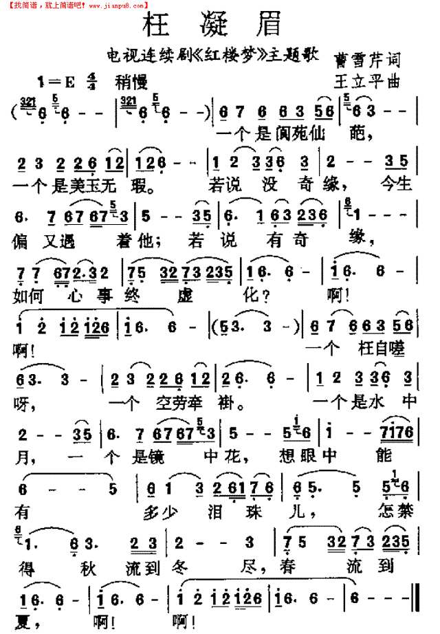 枉凝眉歌词简谱_乐谱__牛求艺网