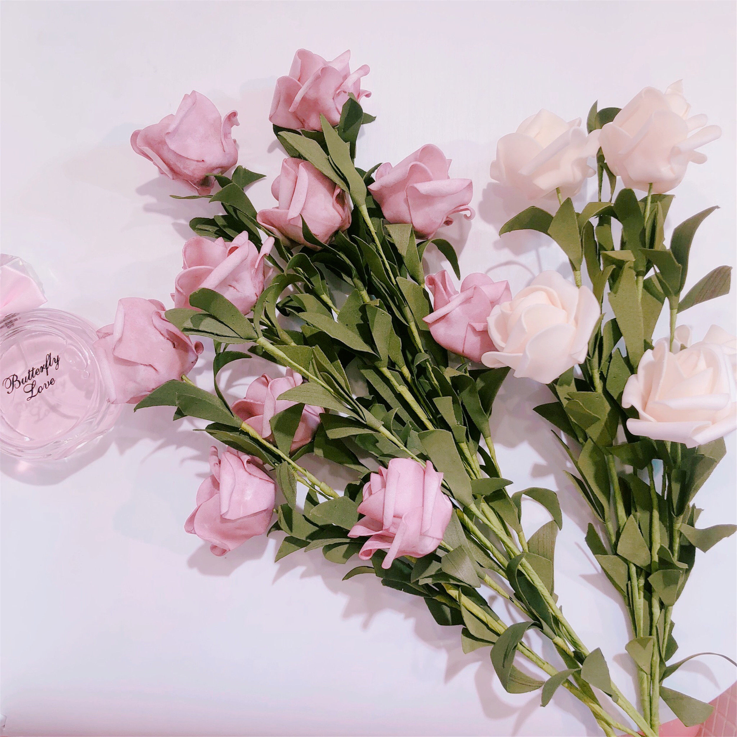 香槟玫瑰仿真花束ins风插假花泡沫仿真花