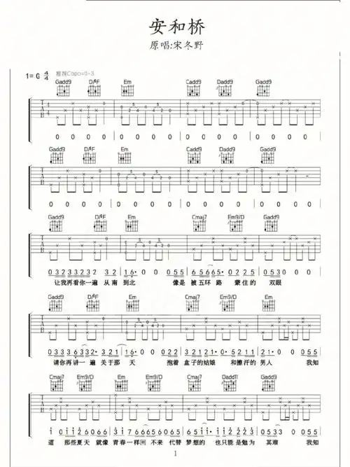 >>安和桥 民谣吉他弹唱谱 宋冬野