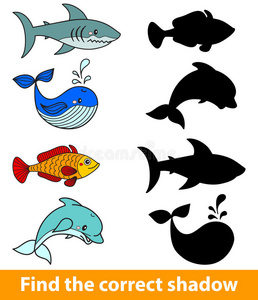 海豚鱼儿童游戏找到正确的影子鲨鱼,海豚,鱼,鲸鱼照片