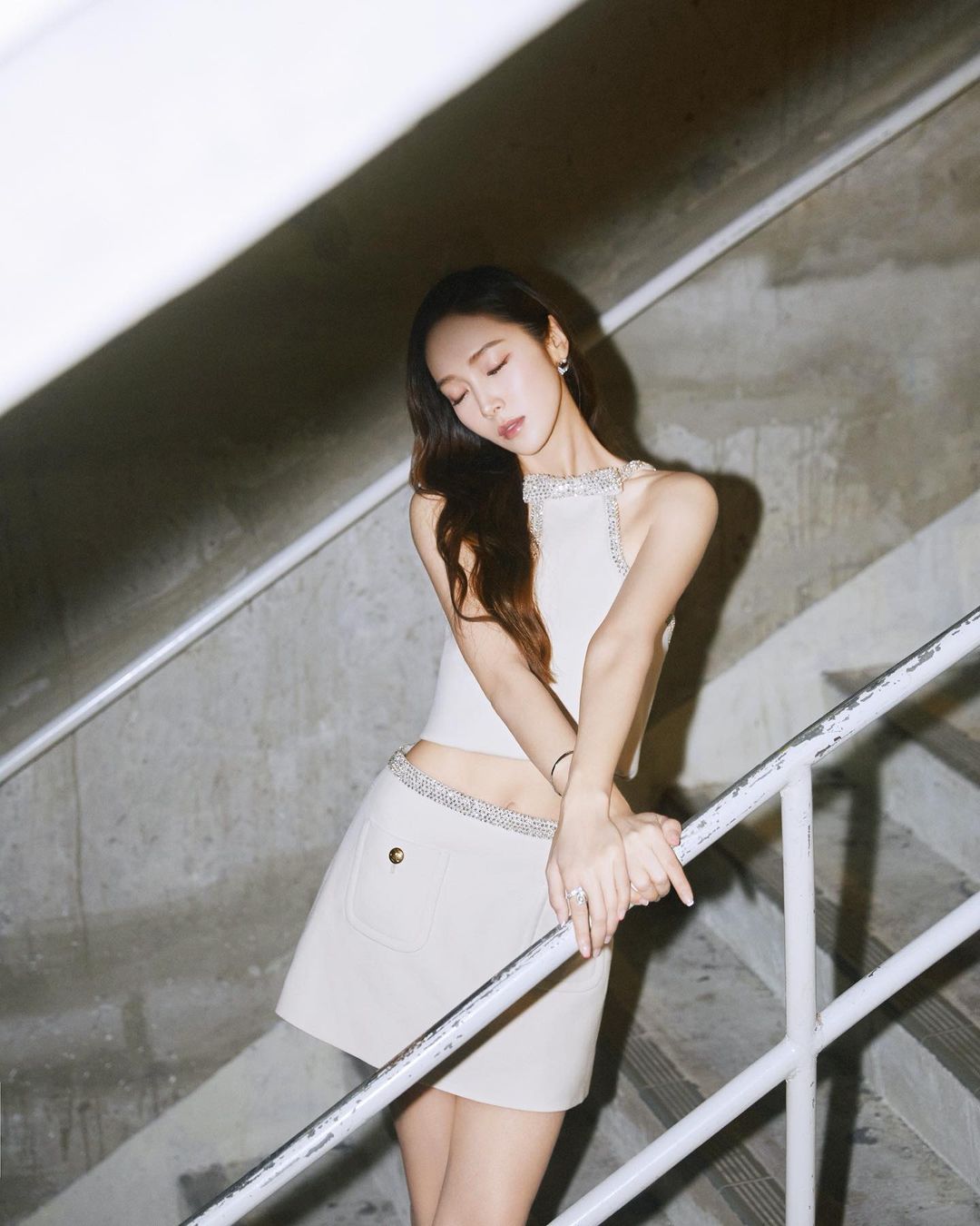 郑秀妍穿露腰装拍楼梯间大片妆容精致皮肤白皙身材好