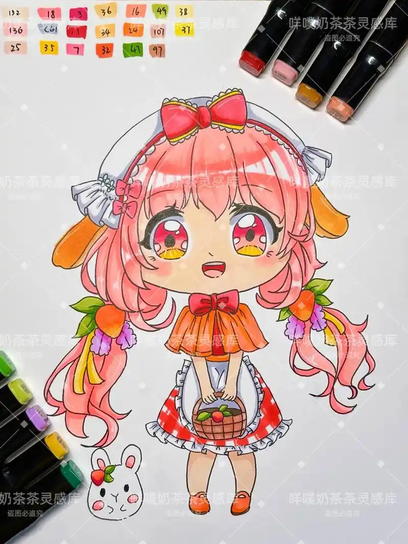 【马克笔插画】手绘大佬更新了!二次元q版动漫少女合集~(新手肝)