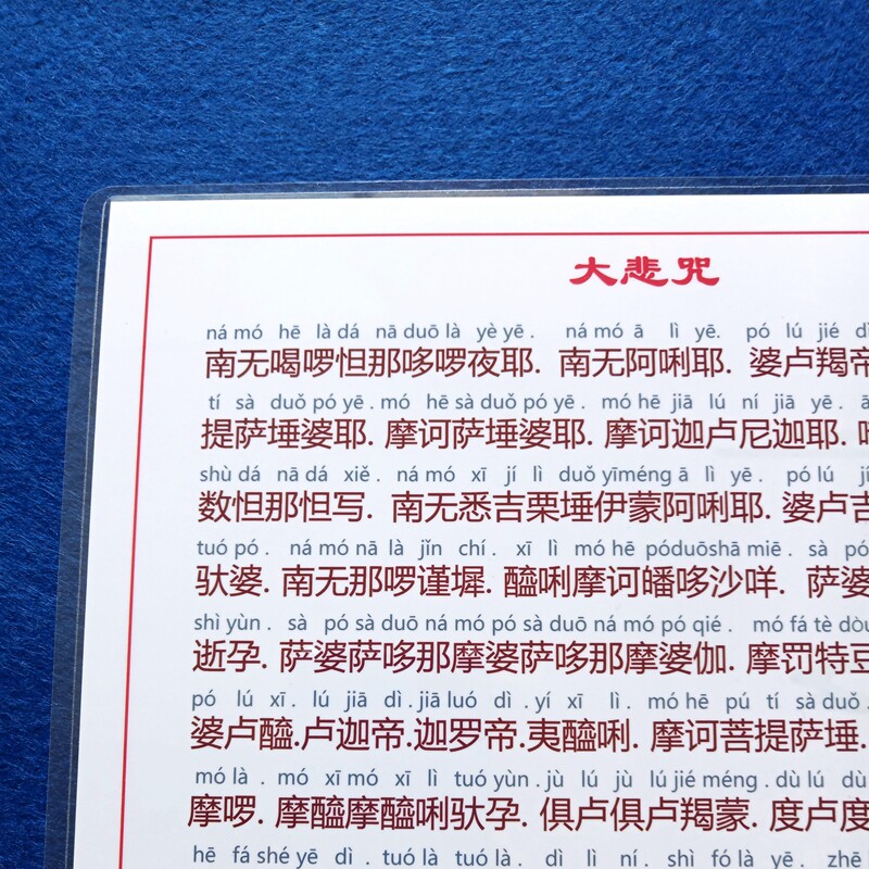 彩色打印塑封注音版大悲咒佛卡a4幅面防水耐用
