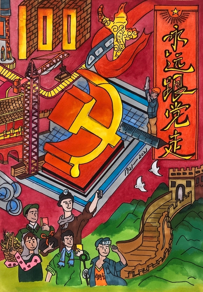 永远跟党走主题美术作品