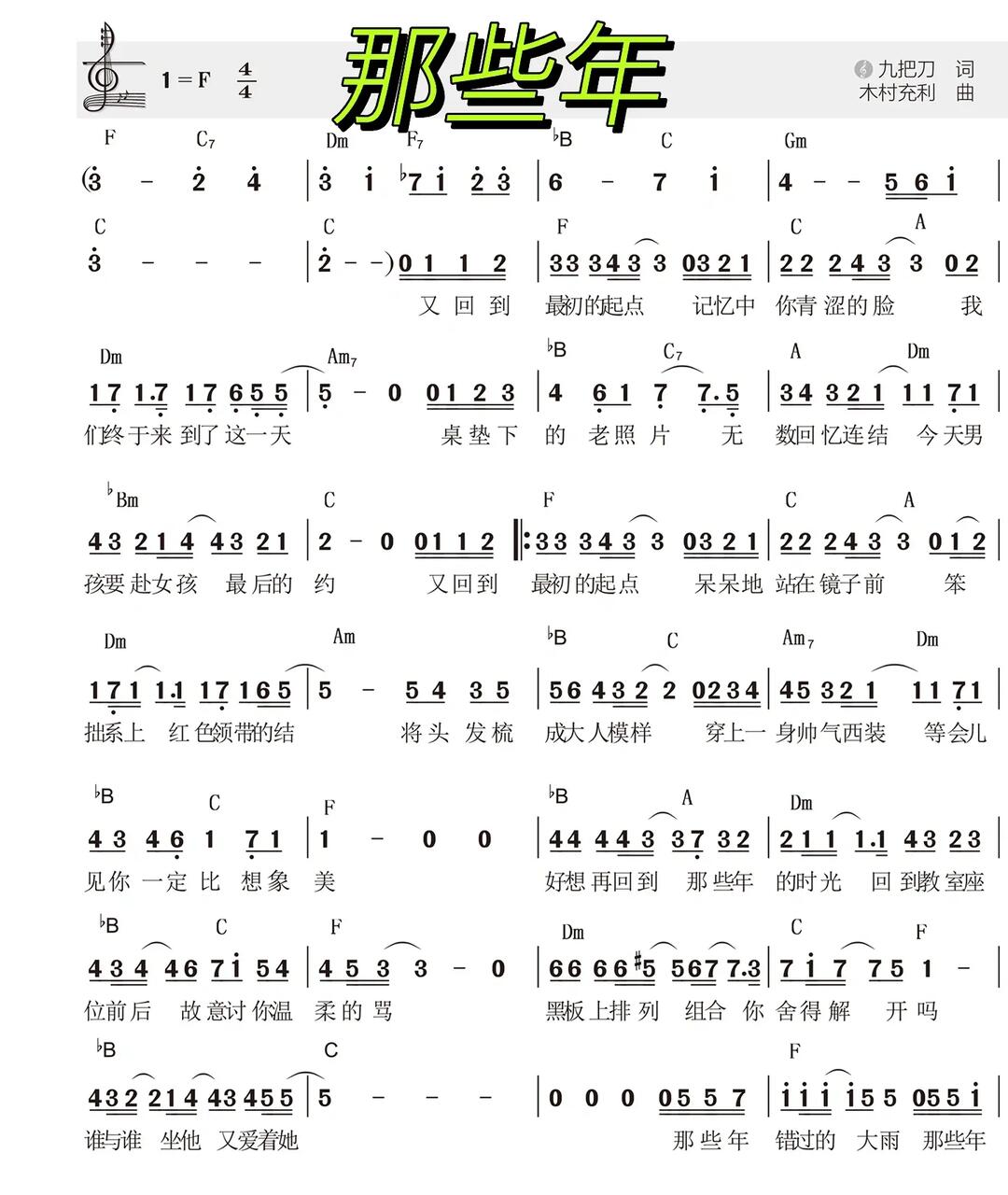那些年_歌谱简谱_哆来咪123曲谱网