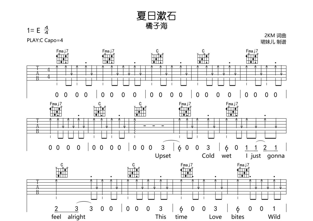 橘子海夏日漱石吉他谱c调吉他弹唱谱