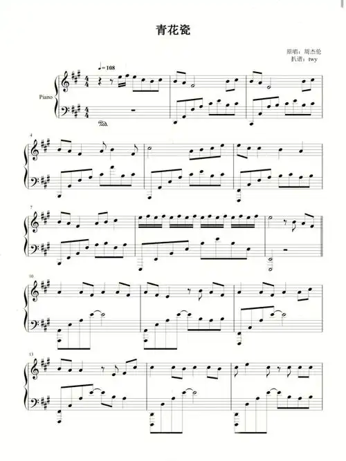 青花瓷钢琴谱原唱周杰伦