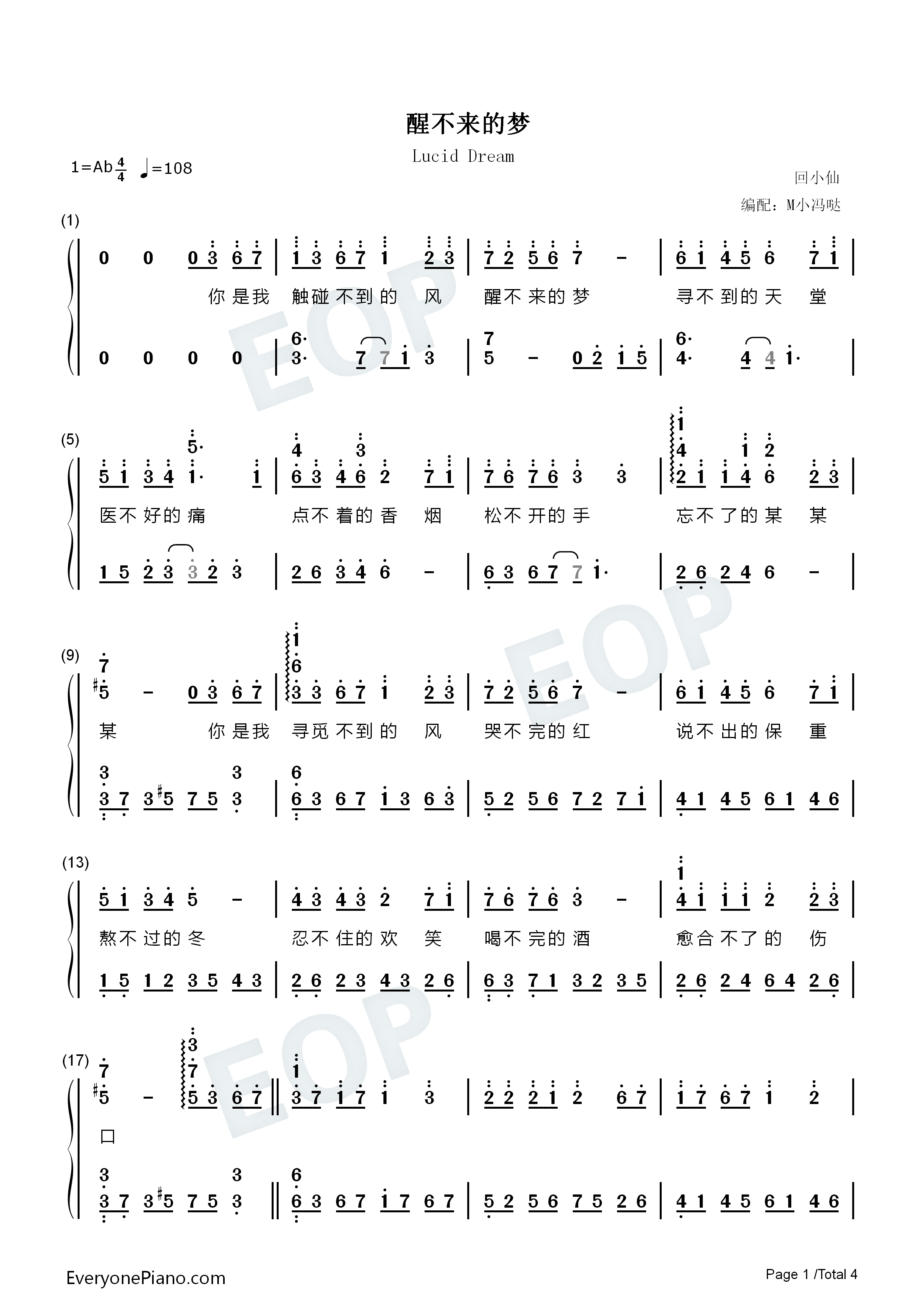 醒不来的梦-你是我触碰不到的风醒不来的梦-抖音热歌双手简谱预览1