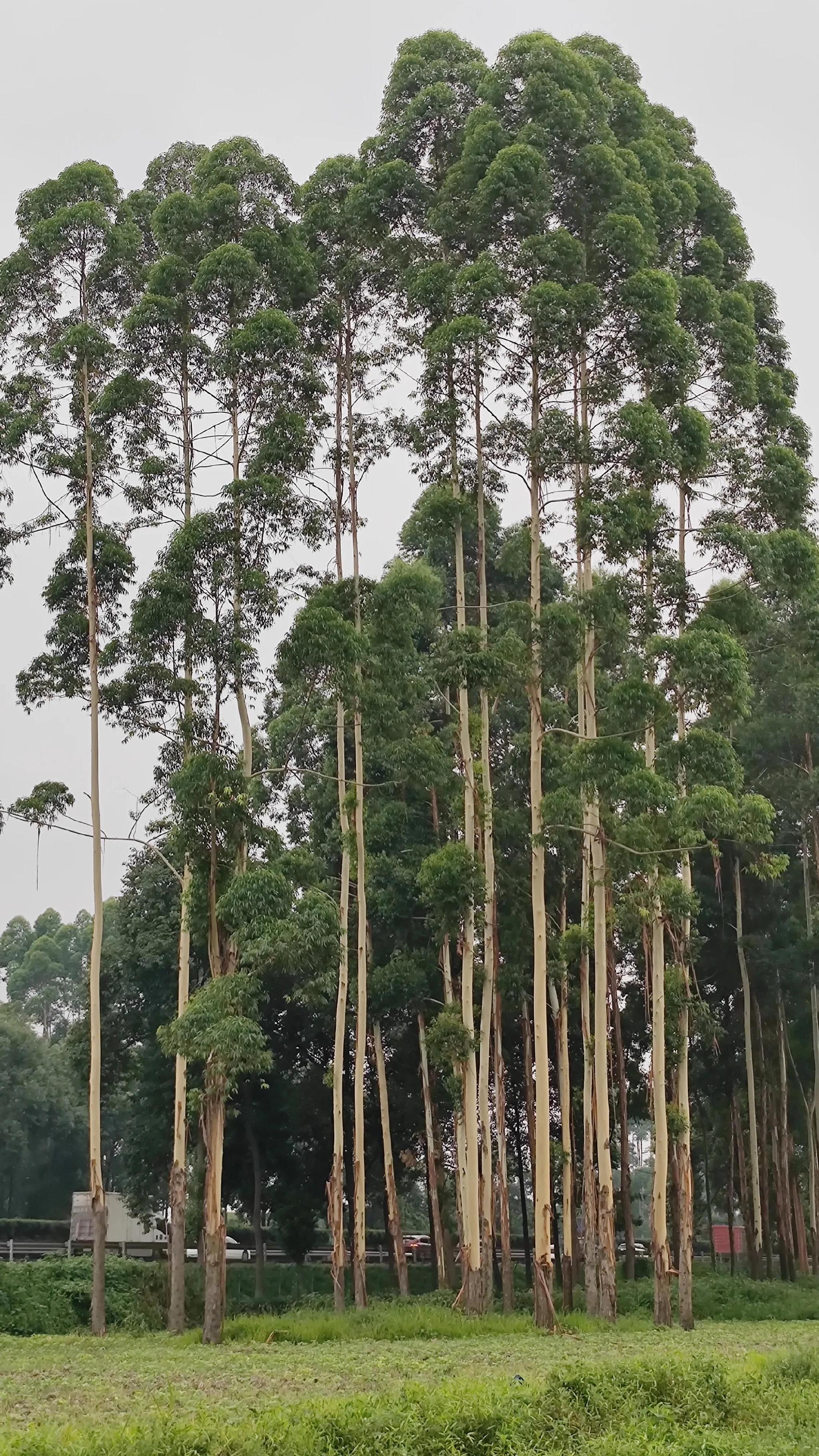 道路旁两颗长得好笔直的树却叫不上名字