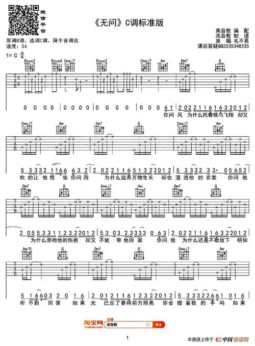 无问- 吉他谱 - 歌谱简谱大全