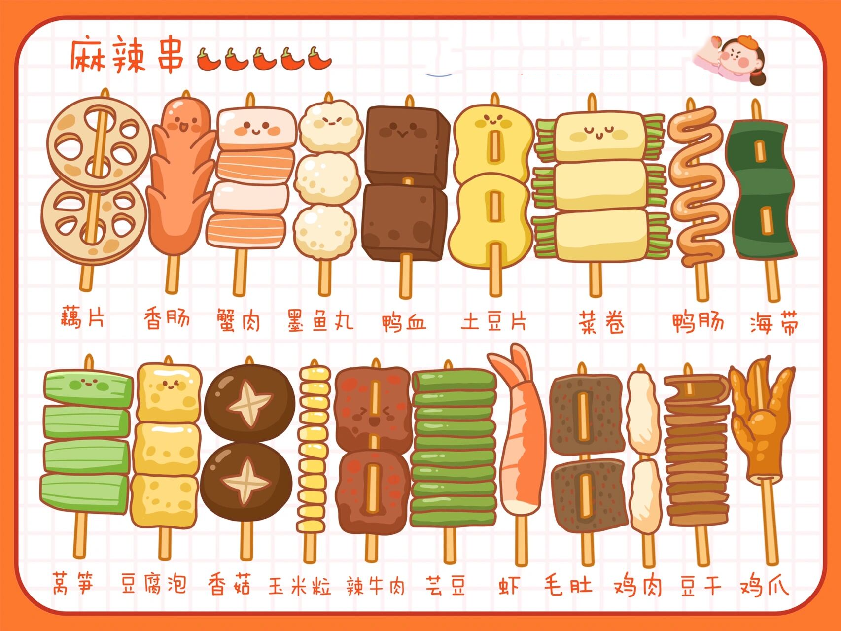 原创美食插画78小吃系 | 麻辣串/涮串简笔画 恬花花简笔画小课堂第