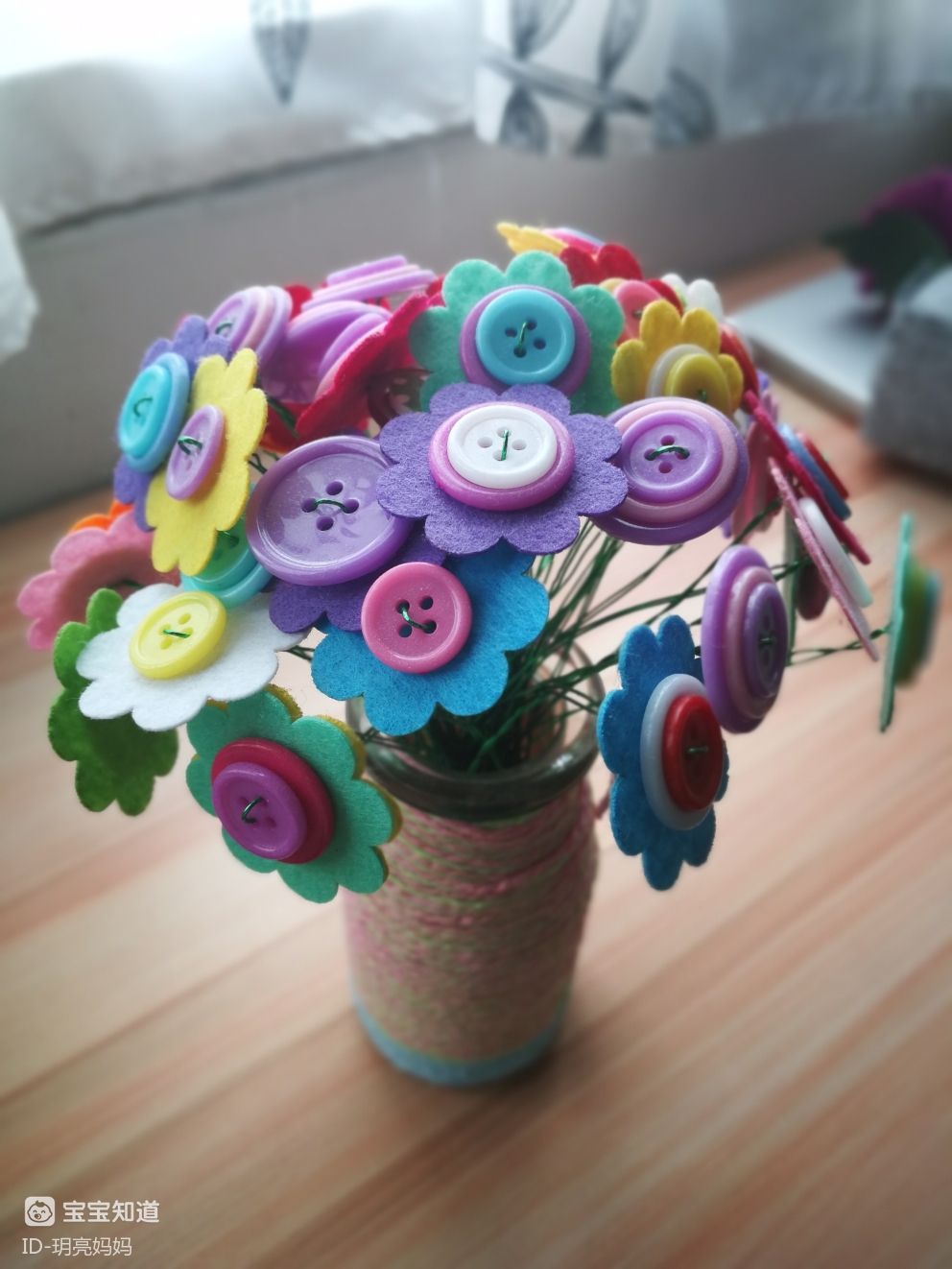 适合四岁以上宝宝的纽扣花手工