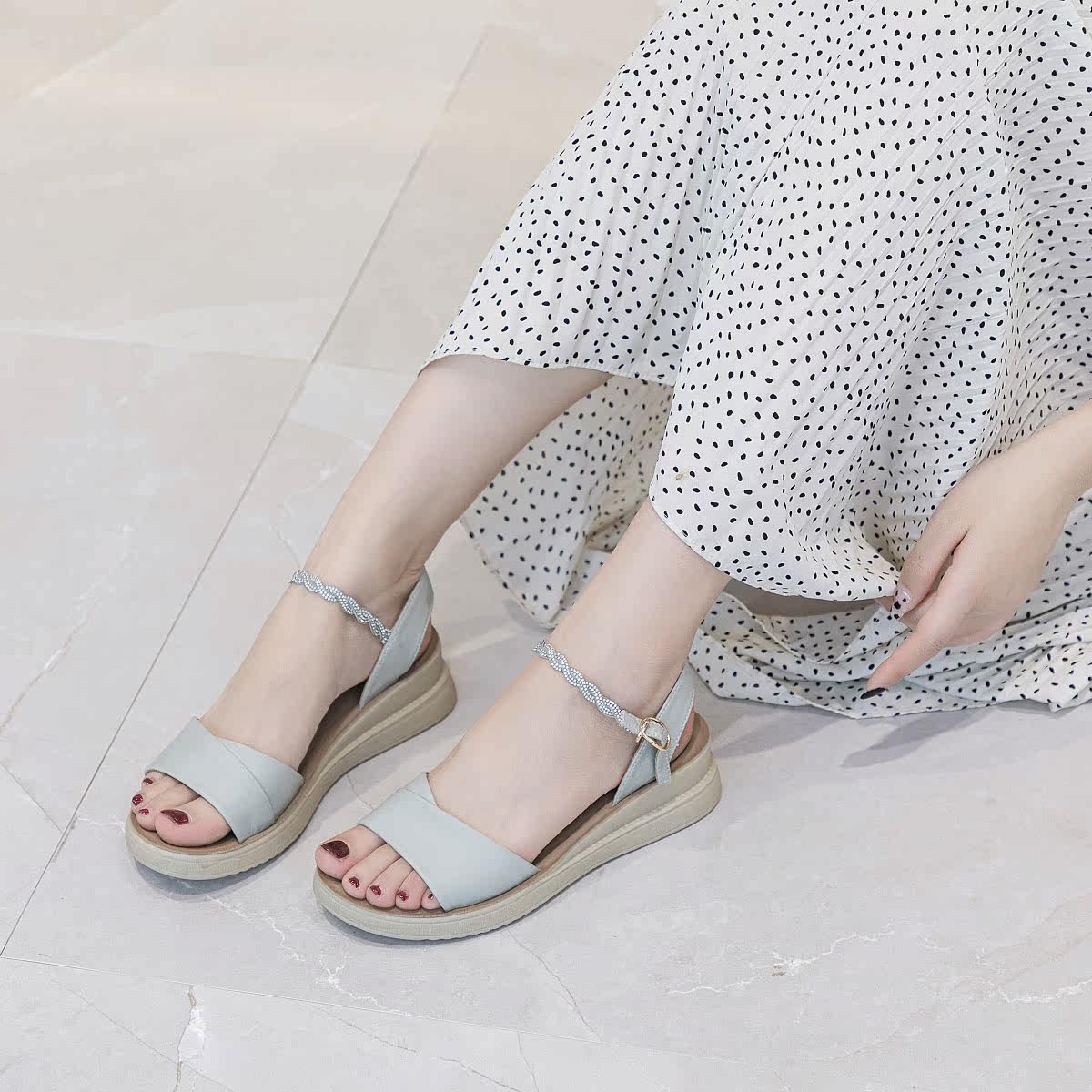 女士罗马平底厚底中跟松糕凉鞋夏季软底女鞋一字带凉鞋