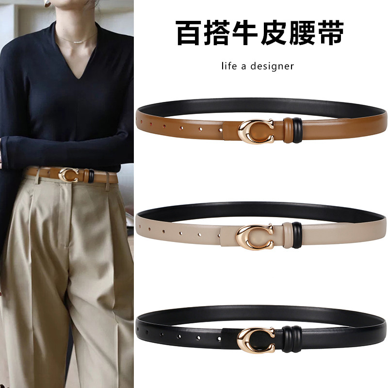 女士皮带简约百搭韩国真皮纯牛皮腰带细时尚韩版针扣休闲牛仔裤带