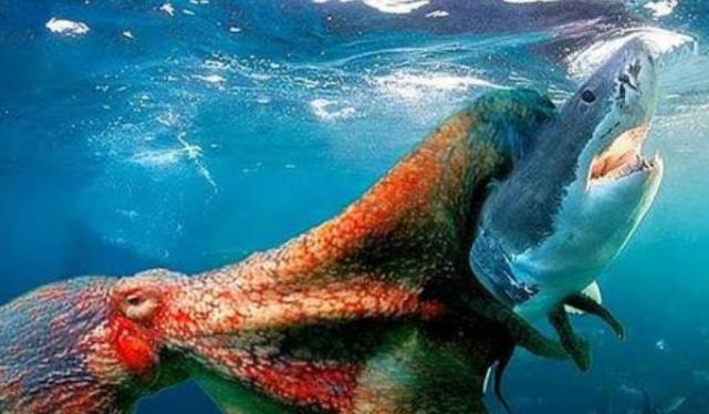 巨型章鱼大战鲨鱼,海底霸王被活活吞噬,镜头拍下精彩一幕!