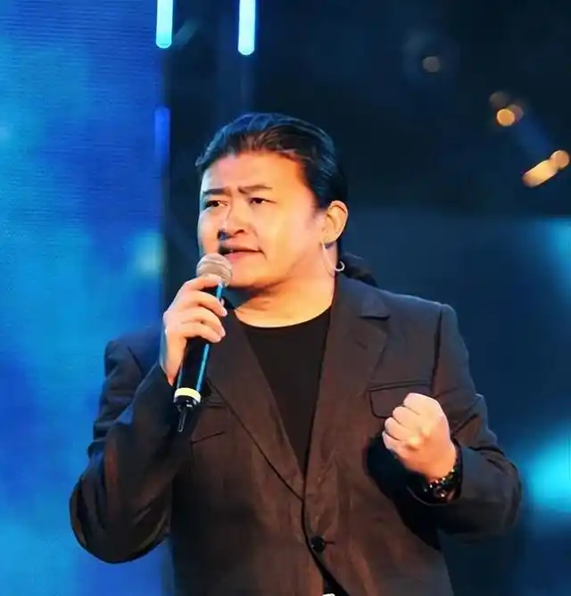 相对于那些捯饬得油光水灵的歌手,刘欢可以说是不修边幅,留着长发,扎